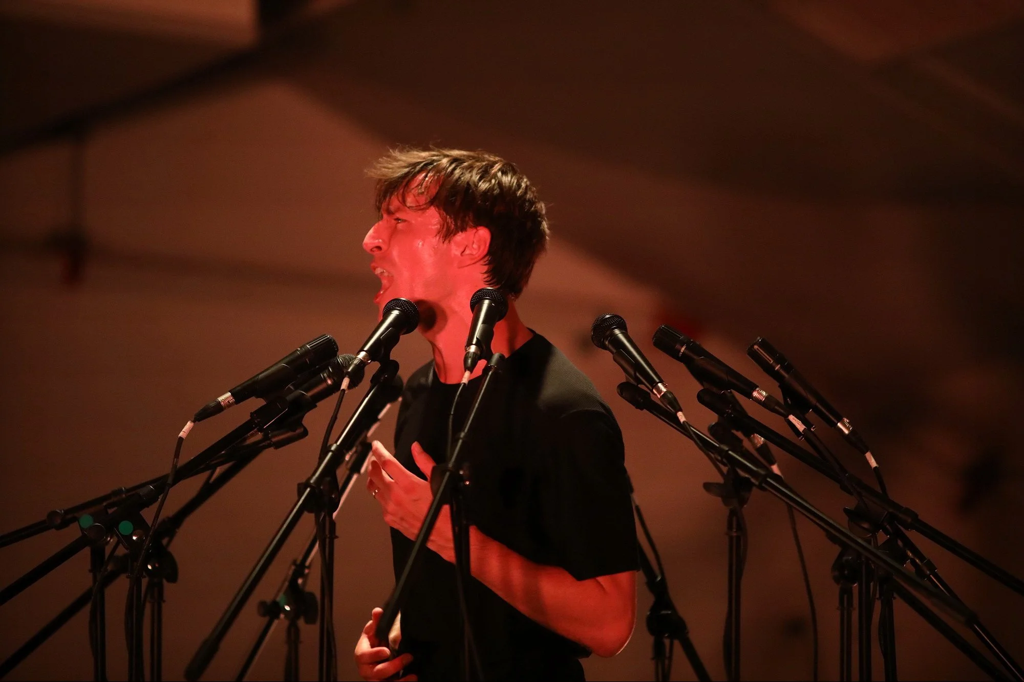 BRECHT is an evening-length collaborative performance constructed by dance artist Bret Easterling & sound designer Maxwell Transue. The work provides a space for Easterling to navigate a field of microphones, using improvised movement to discover his choreographic voice, while Transue constructs the score in real time, using only sounds captured during the performance. The audience, seated in the round, experiences the work intimately — an unpredictable immersive environment punctuated with sincerity, cynicism, and exalted joy.